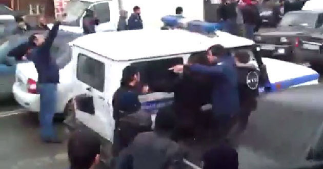 «Полицейские стали стрелять в воздух и применили слезоточивый газ. Завязалась потасовка: в машины полиции полетели камни, люди стали бить машины, но ни одна из них перевернута не была. Я это видел лично», – подчеркнул он.