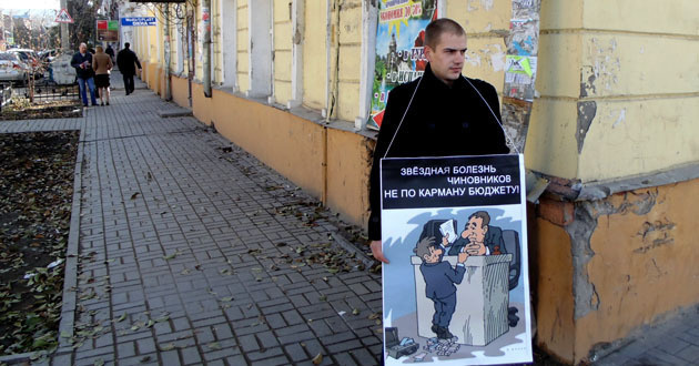 В центре Астрахани сегодня прошла серия одиночных пикетов. Акции были приурочены к сегодняшнему заседанию региональной думы. Вышедшие на пикеты сторонники депутата областной думы Олега Шеина требовали оставить в городе прямые выборы мэра, надписи на плакатах националистов были посвящены социальным вопросам региона.