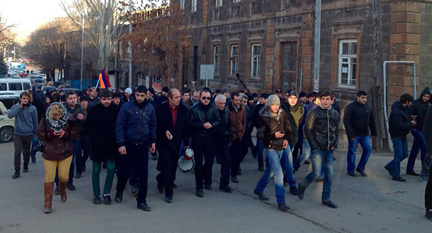 От здания прокуратуры участники акции пешком направились к месту дислокации 102-й российской военной базы, сообщил корреспонденту "Кавказского узла" руководитель НПО "Ширак Центр" Ваан Тумасян с места события.