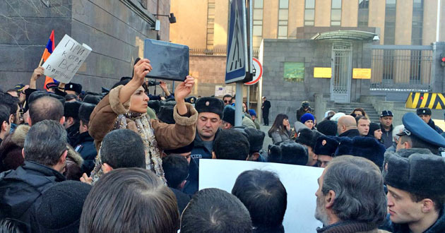 Полиция задержала двух демонстрантов. Один из задержанных - член движения "Сардарапат", режиссер Тигран Хзмалян.