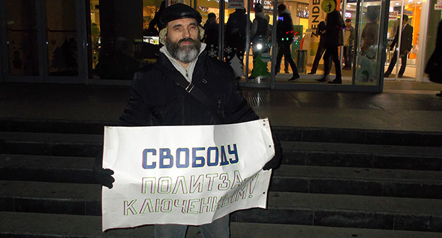 Неподалеку с плакатом "Свободу политзаключенным" стоял гражданский активист Михаил Анисенко.
