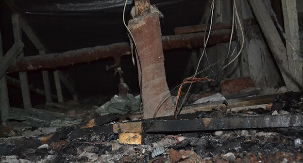 "Здесь явно горели именно провода", - сказала специалист, показав корреспонденту "Кавказского узла" фотоснимки сгоревших проводов и обгоревших балок.