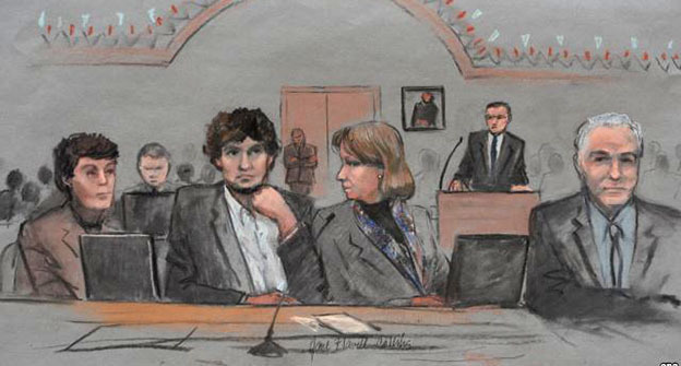 Как писал "Кавказский узел", по версии следствия, этнический чеченец Джохар Царнаев и его брат Тамерлан, убитый при задержании, организовали теракт во время Бостонского марафона в 2013 году. При взрыве погибли трое, 282 человека получили ранения. Прокуратура требует для Царнаева смертной казни. Он вину не признавал, но на заседании 4 марта его адвокаты признали причастность подсудимого к теракту. 30 марта гособвинение завершило представление своих доводов. К представлению доказательств приступила сторона защиты, допросив 30 марта первых двух свидетелей.