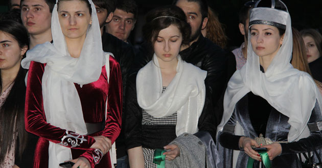 В Москве акция в связи с годовщиной окончания войны проходила вечером 21 мая в парке Сокольники. По данным организаторов, на ней было не менее 150 человек. Большинство участников были студентами московских вузов. Они принесли зеленные флаги со звездами и скрещенными стрелами, надели национальные костюмы и повязки, передает корреспондент "Кавказского узла".