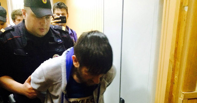 Конвоиры надели наручники на Дени Мирзоева, после чего его увезли из суда.