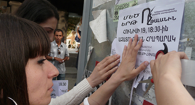 3 июня участники инициативной группы "Против подорожания электроэнергии" собрались 3 июня в сквере Маштоца, где на месте выбрали маршрут акции. Затем по этому маршруту на улицах Еревана они раздавали населению листовки с информацией о намеченном на 19 июня протестном шествии.