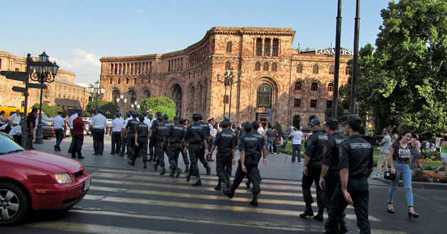 "Кавказский узел" писал, что вечером 27 июля активисты начали пикет на площади Республики. Участники акции предпринимали попытки прорвать оцепление полиции и занять место в центре площади. 29 июля во время очередного противоборства с полицией травму получил член движения "Вставай, Армения!" Давид Санасарян.