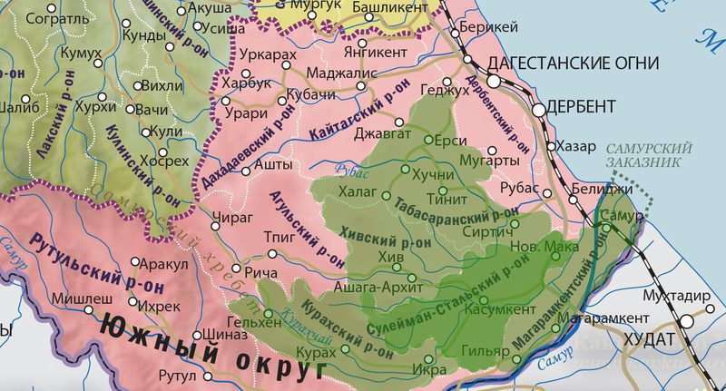 Сулейман-Стальский граничит со всеми четырьмя районами, на территории которых с сегодняшнего дня действует режим КТО. При этом Курахский район граничит с Хивским и Сулейман-Стальским районами, а также с Магарамкентским. Магарамкентский район граничит с Сулейман-Стальским и Курахским районами, Табасаранский район - с Сулейман-Стальским и Хивским районами, а Хивский имеет границы с Табасаранским, Сулейман-Стальским и Курахским районами республики.