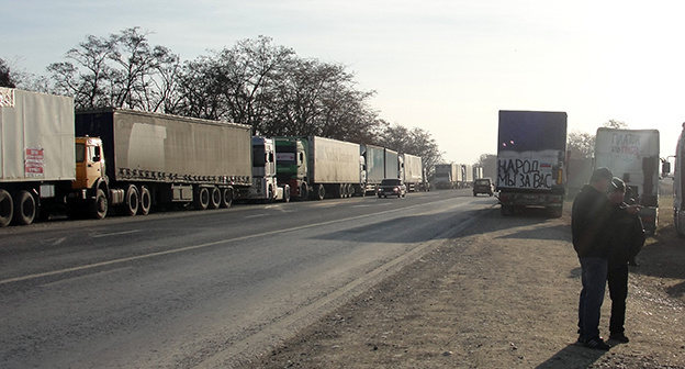 В районе Хасавюрта забастовку продолжили около 500 дальнобойщиков