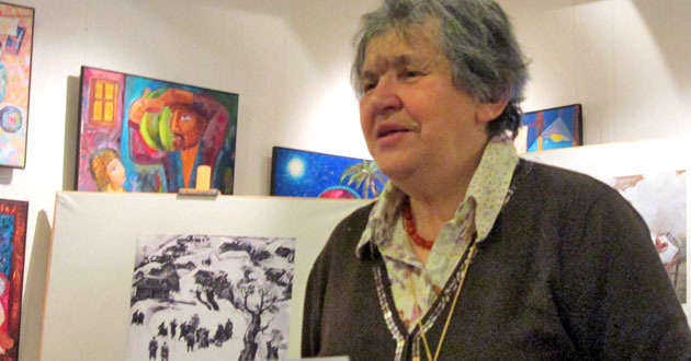 Исанна Лурье представила собравшимся картины чеченских и ингушских художников, на которых запечатлены моменты высылки вайнахов. На многих полотнах изображены эпизоды жизни чеченцев и ингушей в ссылке.
