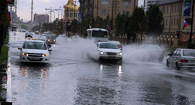 Улицы Грозного подтоплены после ливня
