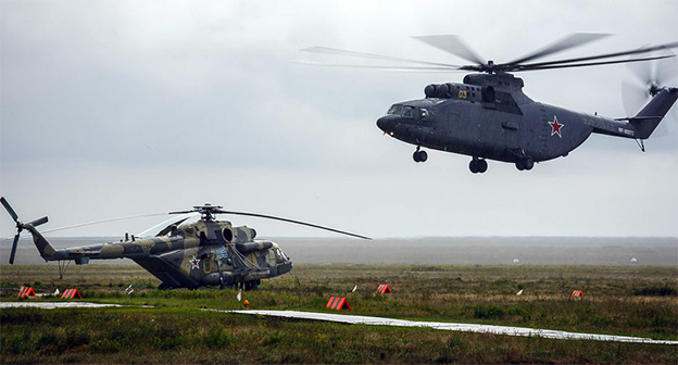 По данным пресс-службы Южного военного округа, в летно-тактических учениях задействованы около 20 экипажей транспортно-штурмовых вертолетов Ми-8АМТШ "Терминатор" и Ми-8МТВ-5.