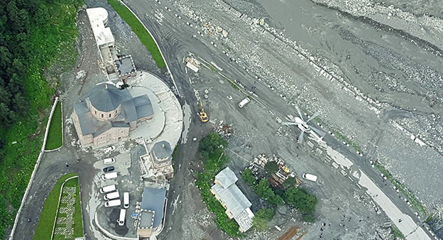 МВД Грузии планирует сегодня на вертолетах эвакуировать людей, которые укрылись в мужском монастыре в Дарьяльском ущелье после схода селя на дороге в направлении грузино-российской границы.