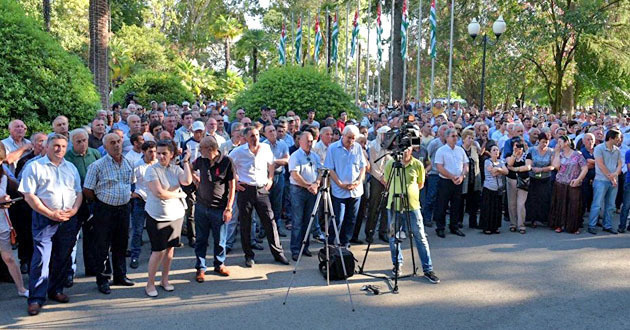 По разным оценкам, в митинге принимает участие более тысячи человек. Среди митингующих находится и глава государства Рауль Хаджимба, сообщает «Спутник-Абхазия».