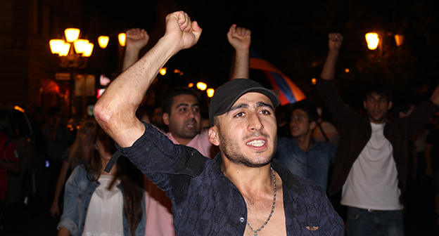 "Кавказский узел" информировал, что вечером 25 июля сторонники оппозиционного "Учредительного парламента" в центре Еревана провели шествие в поддержку мятежников, участниками которого, по данным организаторов, стали свыше 10 тысяч человек. Участники акции, в частности, потребовали отставки президента страны и скандировали призывы в поддержку Нагорного Карабаха.