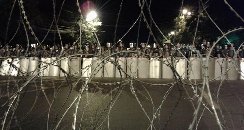 Представители правоохранительных органов находятся в полном спецобмундировании, к месту событий стянуты спецтехника и силы спецназа. При этом никаких мер по разгону участников спонтанной акции протеста не принимается.