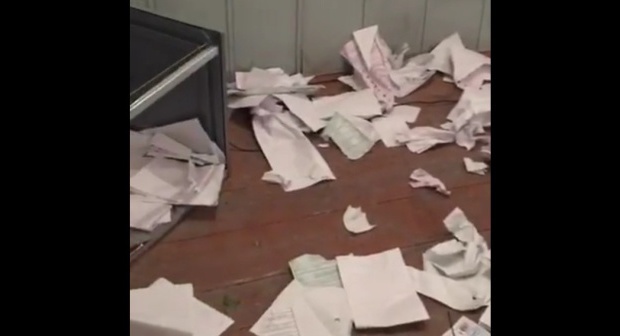 В Facebook и YouTube опубликована 40-секундная видеозапись, сделанная в участке после произошедшего. На ней видно, что по всему участку разбросаны порванные бюллетени, один из находящихся на участке людей продолжает их топтать.