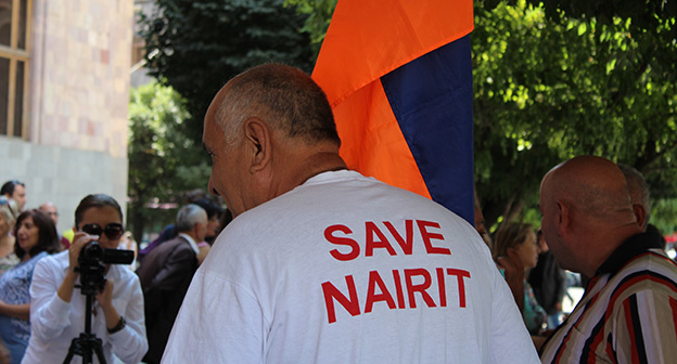 В руках участников акции протеста были транспаранты и плакаты с надписями: "Наирит – гарантия развития экономики Армении!", "Я люблю Наирит!", "Наирит – мой дом!" и "Возобновление деятельности Наирит!".