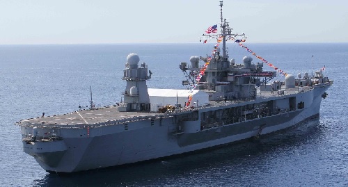 Командный корабль Mount Whitney является флагманом шестого флота ВМС США и вступил в строй в 1971 году. Корабль базируется в итальянском порту Гаэта. Водоизмещение корабля составляет 18,4 тысячи тонн, длина — 189 метров, ширина — 33 метра, максимальная скорость — 23 узла. Корабль вооружен двумя 25-миллиметровыми пушками M242, двумя 20-миллиметровыми зенитными пушками Phalanx CIWS и четырьмя пулеметами калибра 12,7 миллиметра, пишет "Военное обозрение".