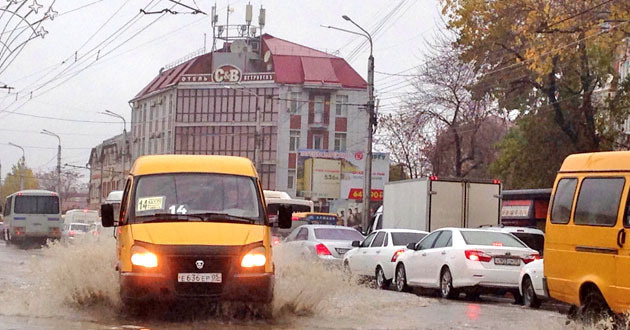 В свою очередь жители Махачкалы пожаловались на пробки из-за затопленных дорог.