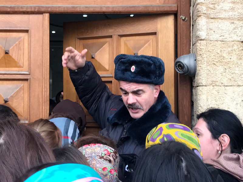 После встречи с Хасановой женщины опять предприняли несколько попыток пройти в здание мэрии, но полиция их не пустила. Сначала толпе препятствовали только несколько полицейских, чуть позже подъехали еще два наряда полиции. Они отодвинули митингующих от дверей администрации в центр двора, встали у дверей и никого в мэрию не пропускали, растолкав собравшихся женщин, передает корреспондент "Кавказского узла".