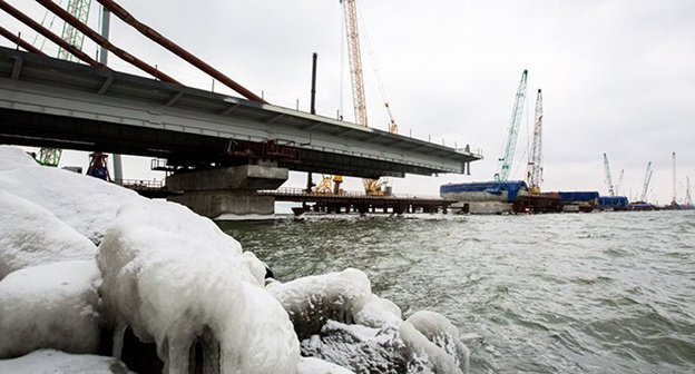 "Всего же строителям предстоит возвести пролеты над морской гладью протяженностью более 6 км", - говорится в сообщении, размещенном на сайте инфоцентра.
