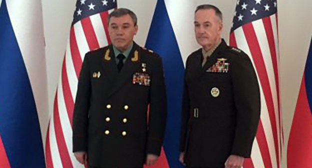 По данным российского военного ведомства, Герасимов и Данфорд также "обменялись мнениями о текущем состоянии российско-американских отношений, оценками ситуации в сфере международной безопасности в Европе, на Ближнем Востоке, в Северной Африке и других ключевых регионах мира".