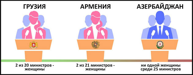 В трех странах Южного Кавказа – Азербайджане, Армении и Грузии - только в НПО, в сфере культуры, образования и здравоохранения женщин и мужчин примерно поровну. Но даже в этих областях высшие посты занимают в основном мужчины, пишет издание Meydan.tv.