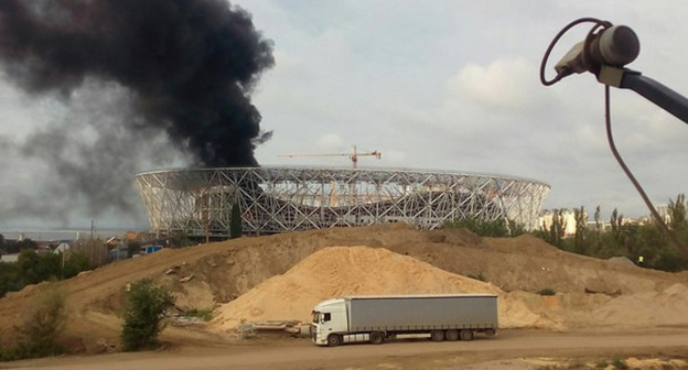 По данным очевидцев, пожар произошел на строительной площадке "Волгоград-Арены", клубы черного дыма были видны даже из отдаленных районов, передает V1.ru.