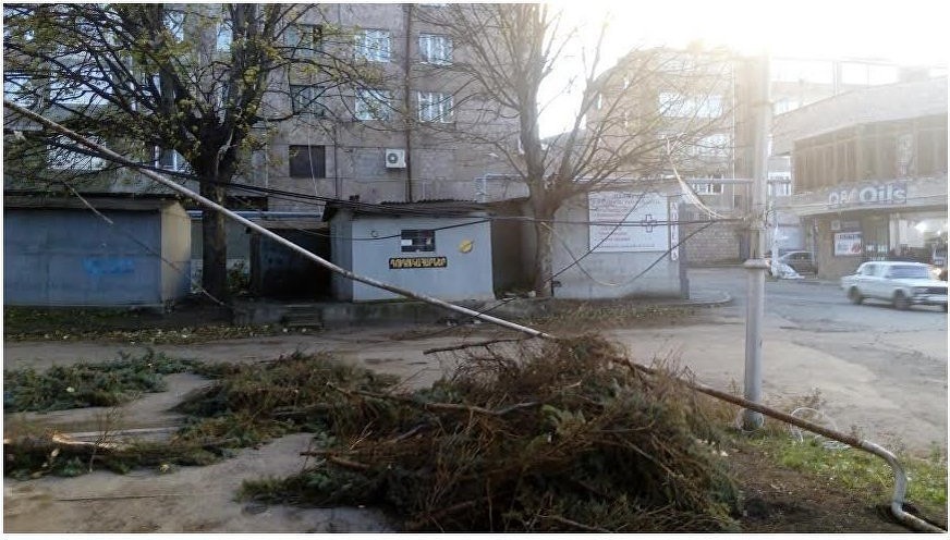 Сообщения о падении деревьев и повреждениях зданий в Ереване начали поступать в центр кризисного управления МЧС Армении с 19.50 по местному времени (18.50 мск). Расчеты чрезвычайного ведомства выехали на места происшествий.