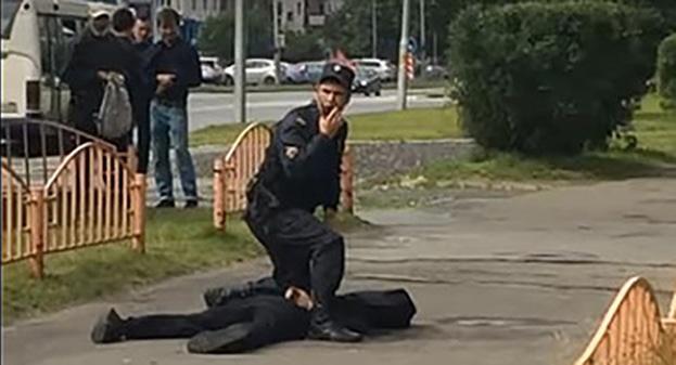 "На место незамедлительно прибыли сотрудники ППС, которые, в целях пресечения противоправных действий нападавшего применили оружие, в результате чего нападавший был ликвидирован", - сообщается на сайте ведомства.