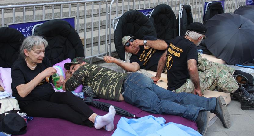 При этом сами же участники акции разошлись во мнениях о причине отсутствия биотуалетов. Некоторые из них уверены, что мэрия Тбилиси не дает разрешение на их установку, другие утверждают, что организаторы акции в мэрию пока не обращались, так как голодовка продолжается четвертый день, и необходимости ставить биотуалеты на прилегающей территории нет.