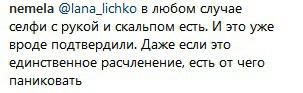 "В любом случае селфи с рукой и скальпом есть, это уже вроде подтвердили. Даже если это единственное расчленение, есть от чего паниковать", - написал пользователь nemela.