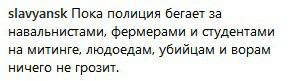 С ним солидарен Артем Краснодарский: "Спасибо [полицейским] за то, что они так активно борются со сторонниками Навального. И ничего, что люди пропадают, а их даже не ищут", - написал пользователь.