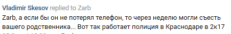 "Люди пропадают, а [полицейским все равно], их интересует только штаб Навального. Пока телефоном под нос не сунули с фотографиями, так и не догадались бы, что убийцы орудуют...", - написал участник сообщества "Типичный Краснодар" в социальной сети "ВКонтакте" Владимир Скесов.