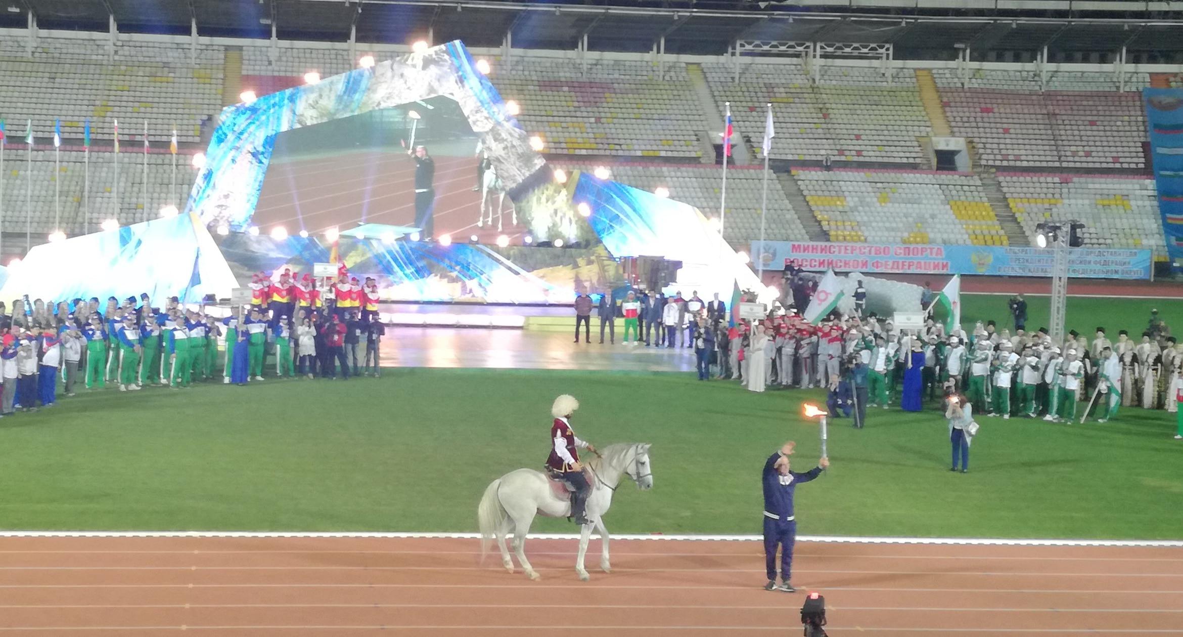 После концерта на стадион вышли спортивные команды участников мероприятия из Кабардино-Балкарии, Карачаево-Черкесии, Чечни, Ингушетии, Дагестана, Северной Осетии и Ставропольского края.
