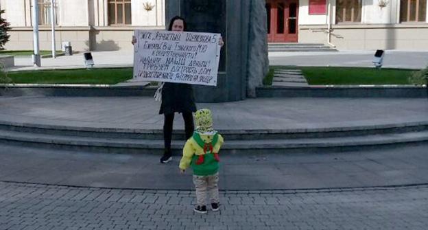 "Строительство семиэтажного жилого дома было остановлено, когда дом должны были сдать. Но вместо ключей нам показали крышу, коробку здания с частичными внутренними работами, без света, канализации, воды, тепла. В апреле 2016 года застройщик заявил о том, что в ЖСК уже нет денег, бухгалтерия утеряна. В декабре 2016 года было возбуждено уголовное дело", - рассказал корреспонденту "Кавказского узла" другой пикетчик Алексей Щуренко.