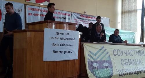 Представитель юридического департамента компании "Пересвет-Юг" Евгений Симонов заявил дольщикам, компания ведет переговоры со Сбербанком.