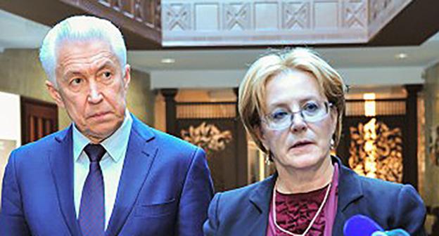 Министр здравоохранения России Вероника Скворцова также посетила республиканские клиники и перинатальный центр, после чего 6 марта на пресс-конференции одобрила оснащение медучреждений и заявила, что "в детской и взрослой республиканских клинических больницах обращает на себя внимание существенное развитие высокотехнологичных методов диагностики и лечения".