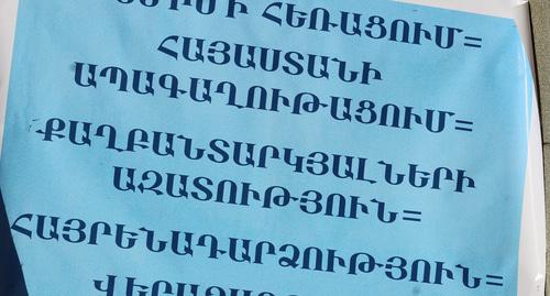 Участники акции вышли на площадь Свободы с государственными флагами Армении и скандировали: "Отстранись!", передает корреспондент "Кавказского узла".