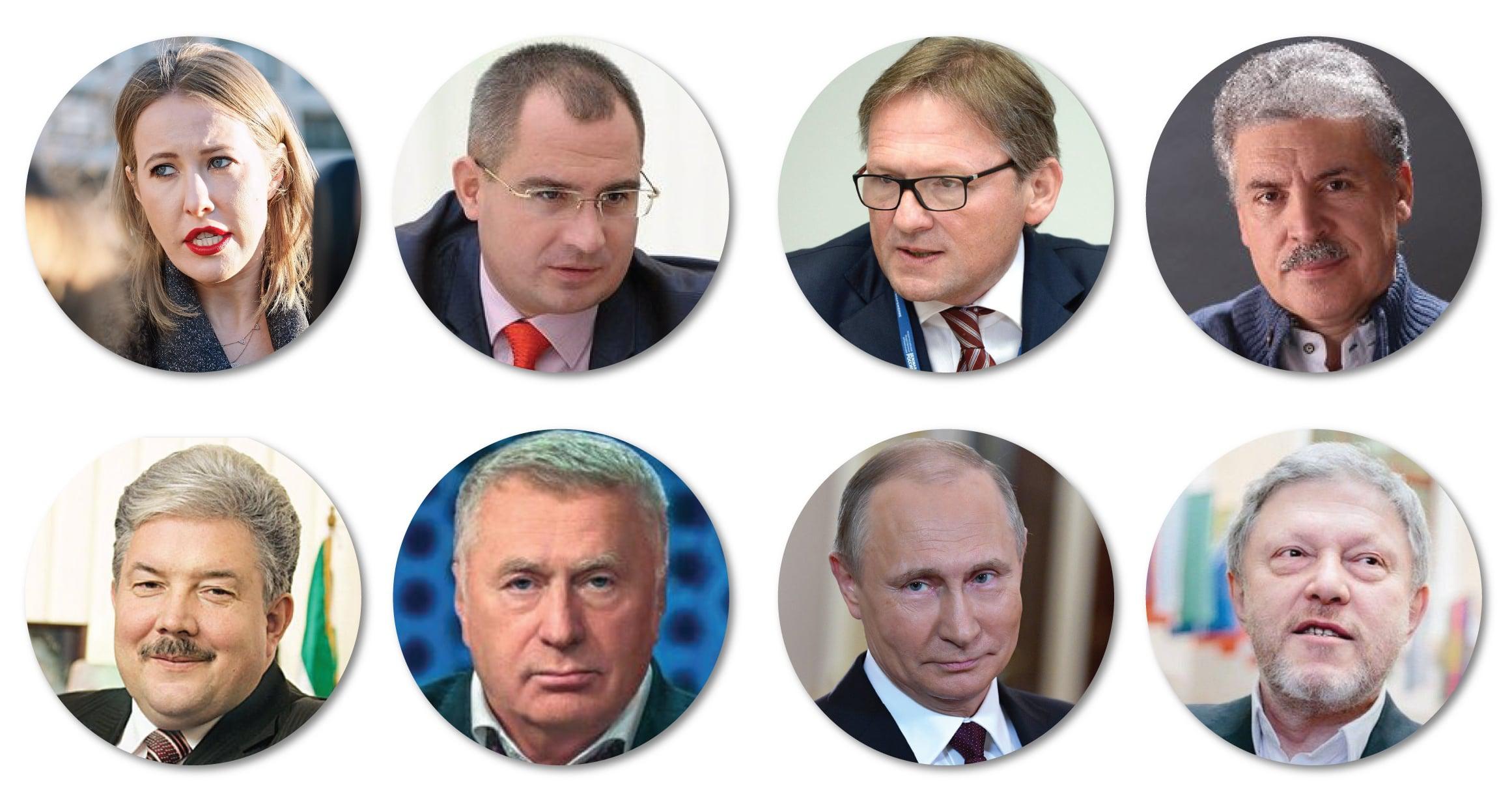 18 марта в России будут выбирать президента на ближайшие шесть лет. Всего в выборах принимают участие семь кандидатов от разных партий и самовыдвиженец — Владимир Путин. Кампания проходит с видимостью соперничества: и по гендерному, и по партийному, и по возрастному принципам. Даже правящая партия официально в выборах не участвует. По факту же выборы безальтернативны.