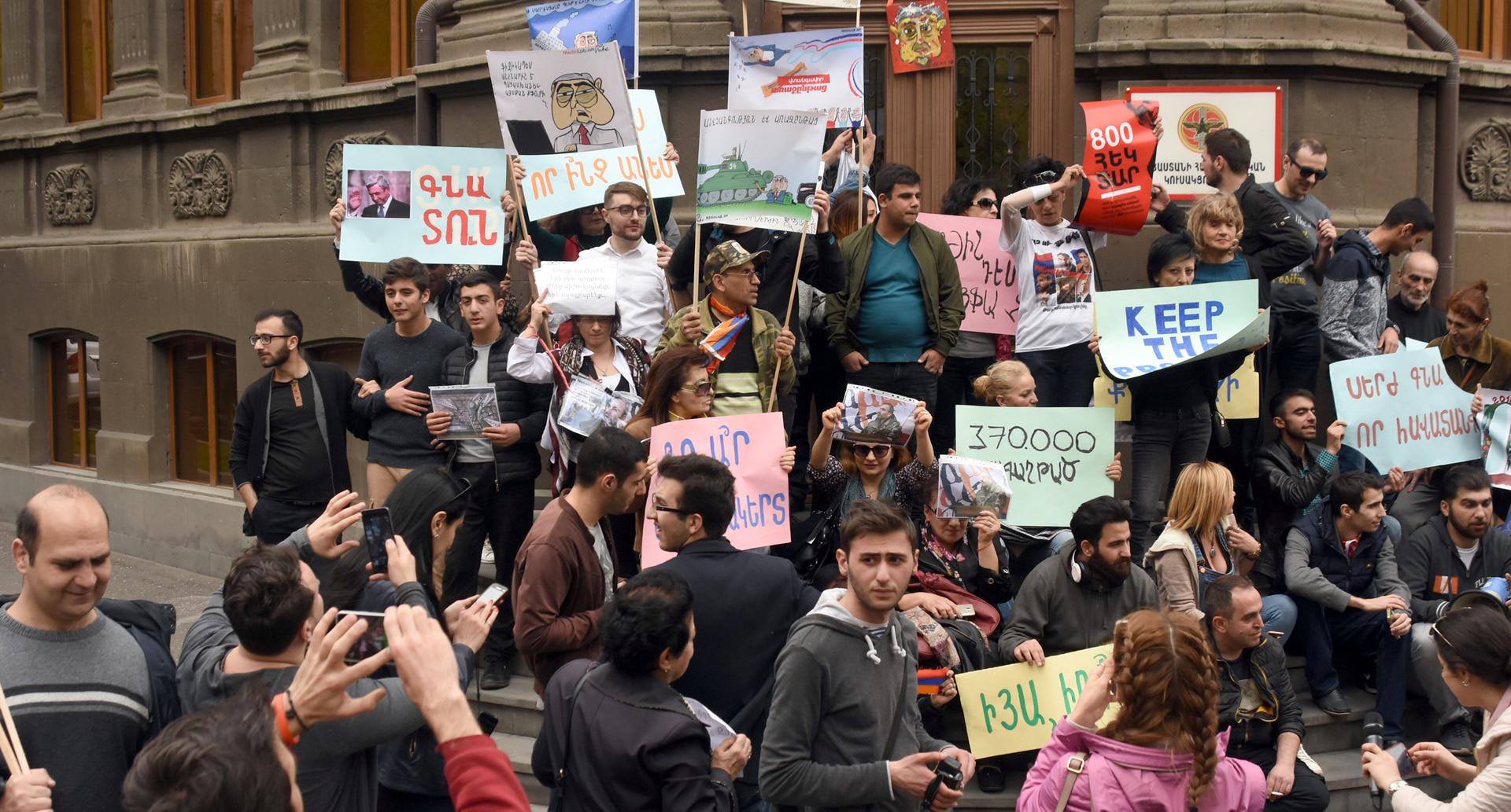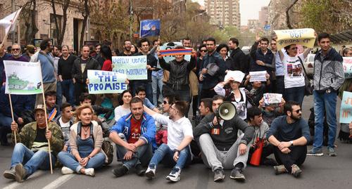 Около десятка активистов в Ереване сели на дорогу, призывая водителей автомобилей присоединиться к протестному движению против назначения Сержа Саргсяна премьер-министром Армении. Акция завершилась без инцидентов, передает корреспондент "Кавказского узла".
