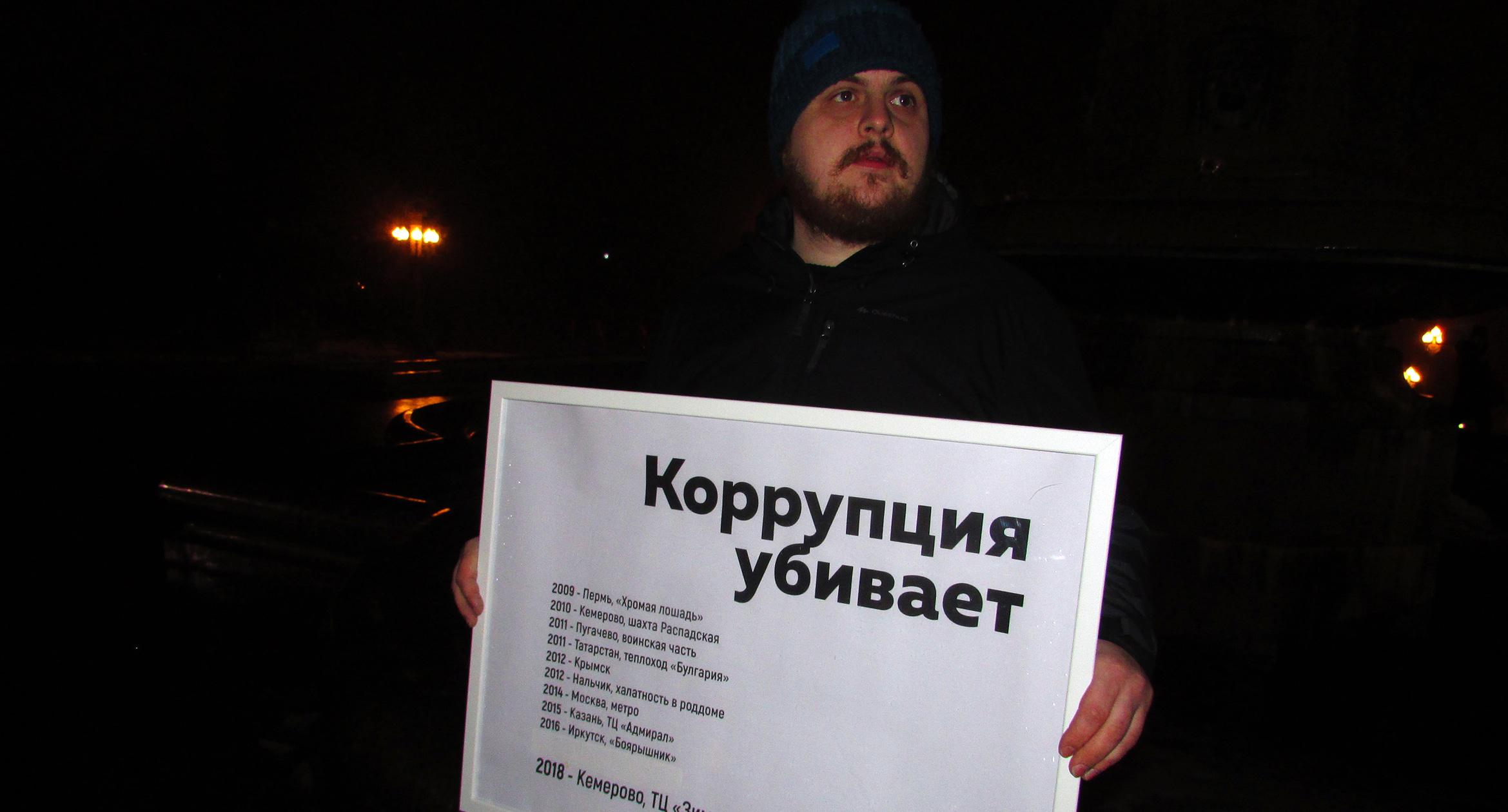 Как писал "Кавказский узел", 27 марта восемь волгоградцев провели одиночные пикеты и заявили, что гибель десятков людей при пожаре в ТЦ "Зимняя вишня" в Кемерово произошла из-за коррупции и халатности чиновников.