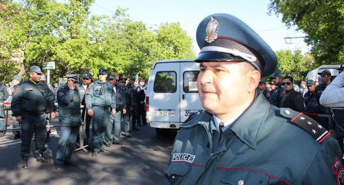 Полиция сконцентрировала большие силы, в том числе технику, на тех участках, по которым можно прорваться к резиденциям президента и парламенту, где сегодня на 12 часов назначено голосование по избранию премьер-министра Армении.