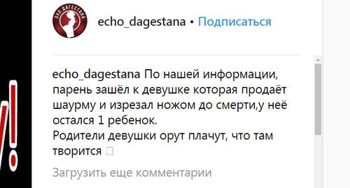 Пользователи соцсети в своих комментариях к сообщению вспомнили о недавнем убийстве девушки в Хасавюрте.