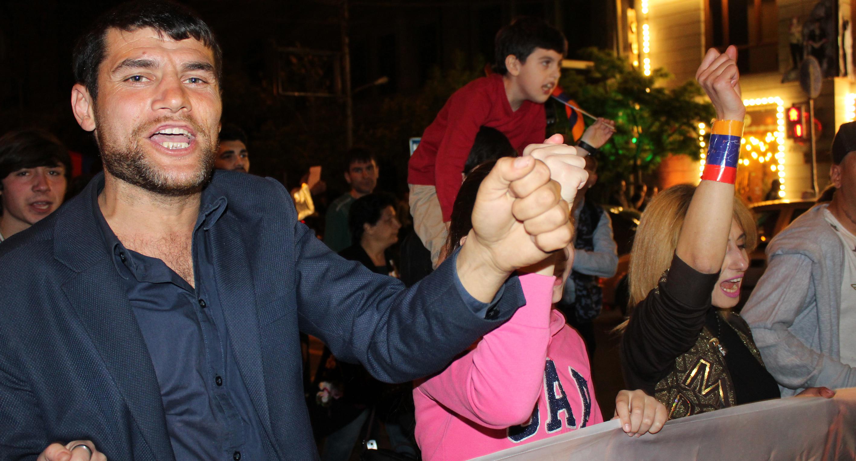 С утра активисты следили за трансляцией обсуждения кандидатуры премьера на установленных в центре Еревана экранах. В ходе парламентского заседания представители правящей партии раскритиковали Пашиняна за отсутствие ясной программы. В итоге свои голоса за лидера протестов отдали лишь 45 из необходимых 53 депутатов, против проголосовали 56 парламентариев. Сразу после голосования Пашинян выступил перед 200 тысячами участников митинга. Он объявил намеченную на 2 мая "тотальную забастовку", призвав своих сторонников повсеместно перекрыть дороги и окружить здания госструктур.
