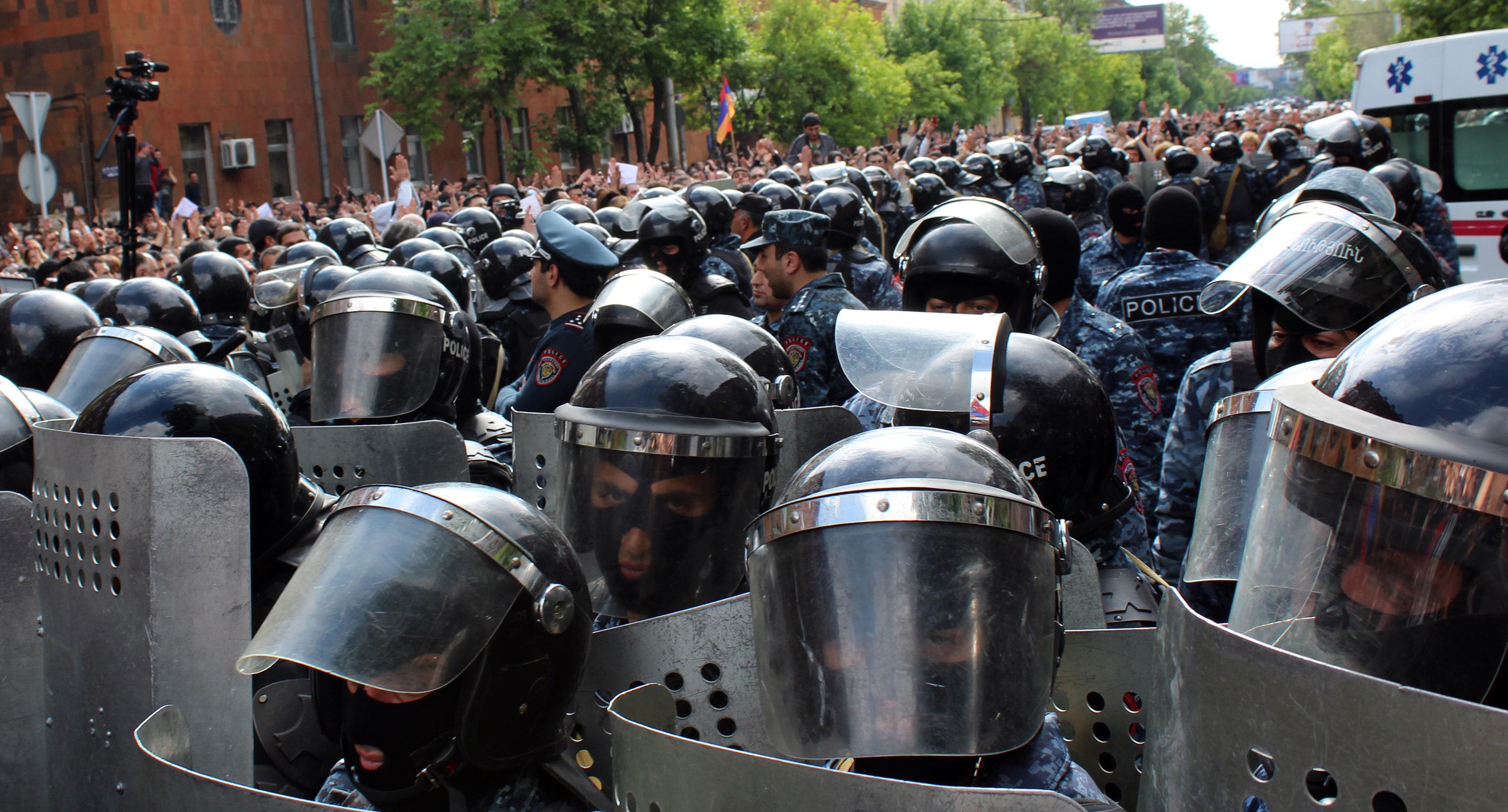 Оппозиция под руководством Никола Пашиняна попыталась провести массовое шествие в сторону здания парламента, произошло столкновение с полицией.