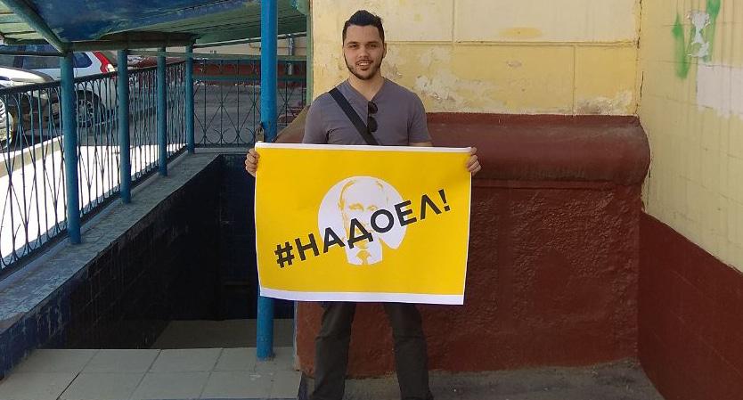 Как сообщил корреспонденту "Кавказского узла" Евгений Кочегин, он был задержан в центре Волгограда с плакатом, на котором изображен президент России Владимир Путин и надпись "Надоел!"