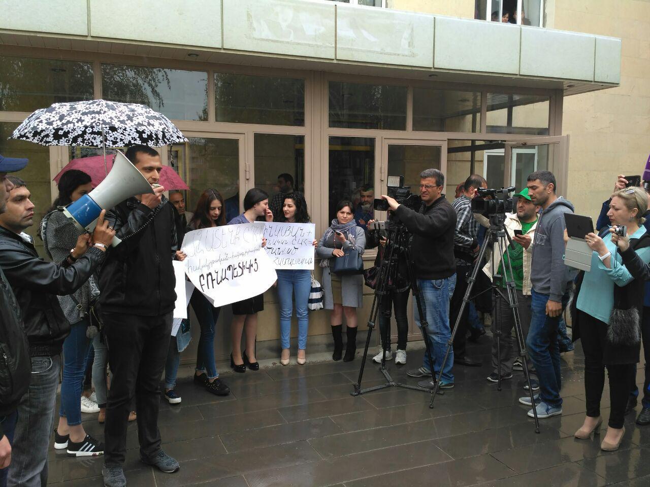 Организаторы акции выступили перед собравшимися с обвинениями против Минасяна. По словам одного из выступавших, бывшего преподавателя Ширакского госуниверситета Гагика Амбаряна, из-за неправильных решений Минасяна вуз потерял 240 млн драмов (около 500 тысяч долларов США).