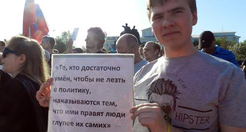 «Я учусь на программиста-бухгалтера... Надо мирно протестовать для того, чтобы власть что-то сделала, чтобы мы жили лучше. Завод «Красный октябрь» у нас почти не работает, «Химпром» обанкротился. В городе безработица. В этом городе работы у меня не будет, я планирую уезжать. ...в Волгограде трудно встретить человека с зарплатой выше 30 тысяч рублей», - сказал корреспонденту "Кавказского узла" Александр.